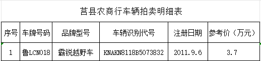 11月3日山東莒縣農(nóng)商銀行霸銳越野車一輛拍賣公告