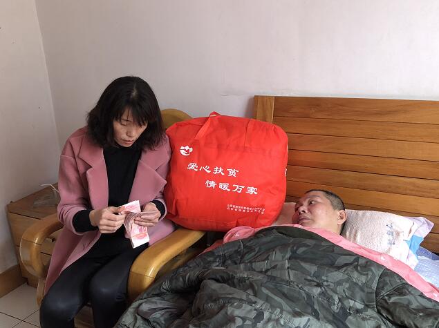 2月26日,正值2018 新春佳節(jié)之際,山東省扶貧開(kāi)發(fā)基金會(huì)秘書(shū)長(zhǎng)王景輝,洪力網(wǎng)副總經(jīng)理?xiàng)瞵?,副秘?shū)長(zhǎng)、山東天使健康救助聯(lián)盟秘書(shū)長(zhǎng)、山東廣播電視臺(tái)《公益山東》副制片人晁玉萍等在山東省血液中心獻(xiàn)血辦主任王淑榮的陪同下,專程從濟(jì)南趕往淄博市張店區(qū)看望和慰問(wèn)因重病陷入困境的無(wú)償獻(xiàn)血者張明豹。