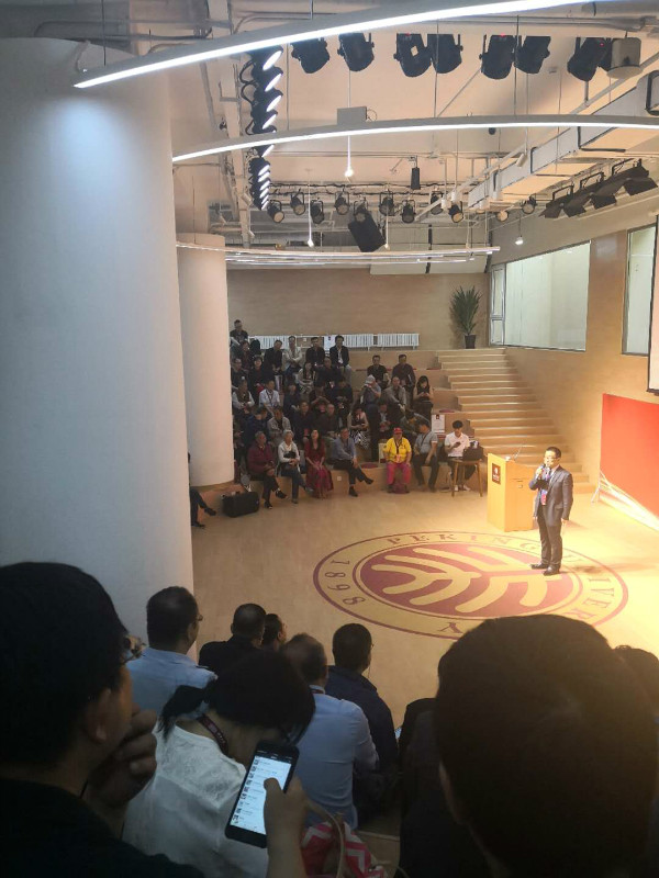 北大校長(zhǎng)林建華在致辭中回顧了北大的歷史,并提到了北大的核心使命?!氨贝蟮暮诵氖姑桥囵B(yǎng)能夠引領(lǐng)未來(lái)的人,我們積極推進(jìn)通識(shí)教育和專業(yè)教育相結(jié)合,建設(shè)多樣化的專業(yè)體系,激發(fā)興趣,調(diào)動(dòng)學(xué)生的主動(dòng)性與創(chuàng)造性。我們立德樹(shù)人,構(gòu)建通識(shí)教育體系,推進(jìn)思想政治教育改革,培養(yǎng)學(xué)生的獨(dú)立思考和思辯能力,努力使學(xué)生懂自己、懂社會(huì)、懂中國(guó)、懂世界?!绷纸ㄈA說(shuō)。