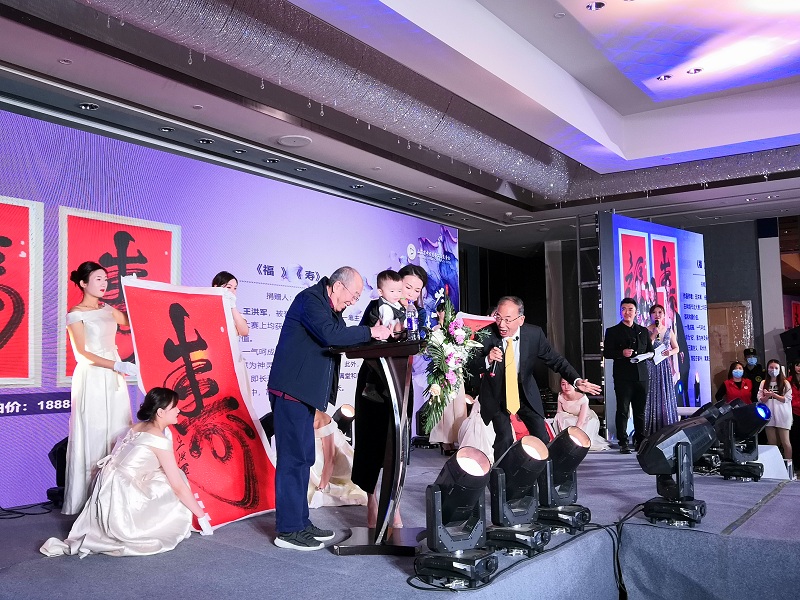 第一個(gè)拍品書(shū)法《?!?、《壽》,起拍價(jià)18888元,經(jīng)過(guò)競(jìng)買(mǎi)人激烈競(jìng)價(jià),最終以36000元成交。在拍賣(mài)師畢研挺主持下,由現(xiàn)場(chǎng)85歲的著名表演藝術(shù)家雷恪生聯(lián)袂年僅15個(gè)月的安德福小朋友在其監(jiān)護(hù)人母親周春衛(wèi)的協(xié)助下共同落槌《?!?、《壽》拍品以示成交。兩人同時(shí)聯(lián)袂落槌符合中國(guó)拍賣(mài)行業(yè)協(xié)會(huì)《公益拍賣(mài)規(guī)程》的相關(guān)規(guī)定。據(jù)悉,由85歲高齡的長(zhǎng)者和僅15個(gè)月的兒童共同在公益拍賣(mài)中落槌成交創(chuàng)下世界紀(jì)錄。85歲高齡的雷恪生老先生熱心公益,多次捐贈(zèng)拍品、捐款、助學(xué),他代表了老一代引領(lǐng)下一代開(kāi)展公益的典范;安德福小朋友在家長(zhǎng)的帶領(lǐng)下參加公益活動(dòng),他象征著青少年一代將把中華慈善文化繼承、弘揚(yáng)下去,中華慈善文化代代相傳。